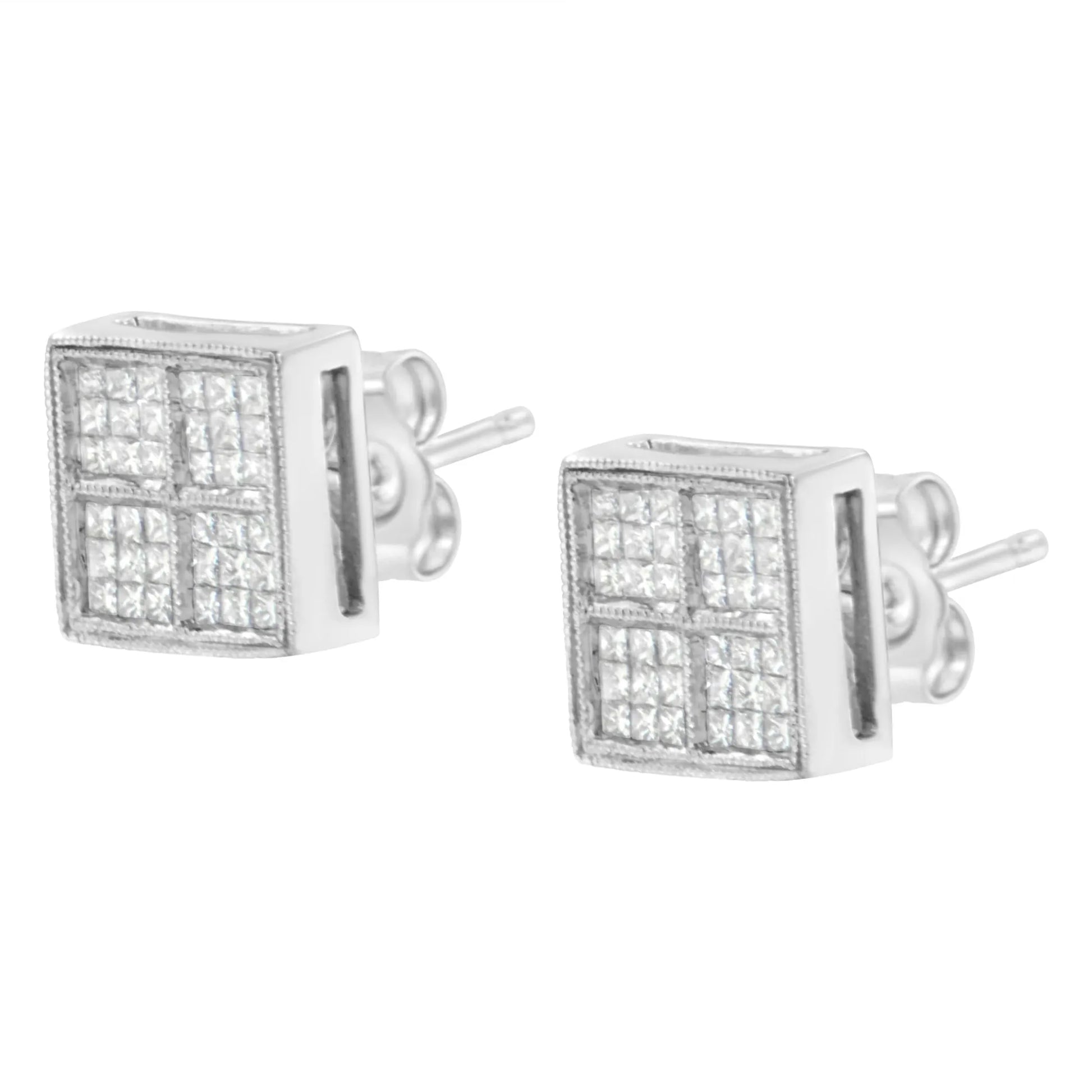 1/2 Carat Princess Diamond Composite Box Shape Milgrain Stud Earrings in 14K White Gold