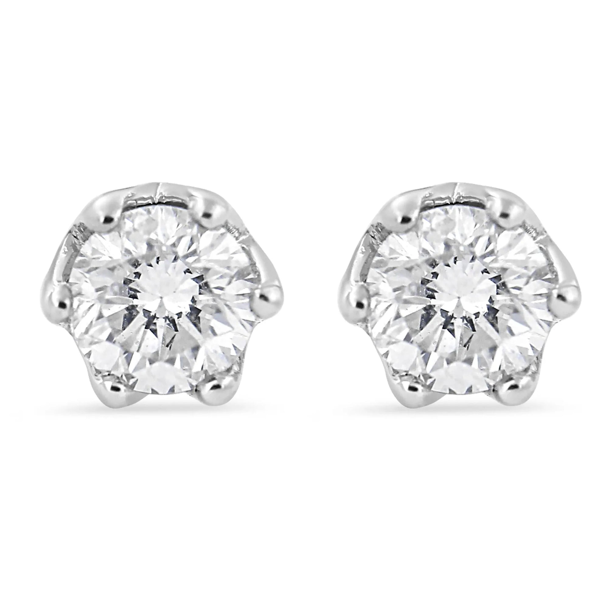1/2 Carat Round Diamond 6 Prong Crown Stud Earrings in 14K White Gold