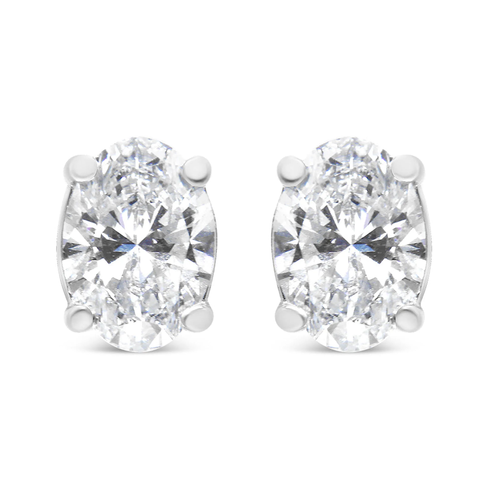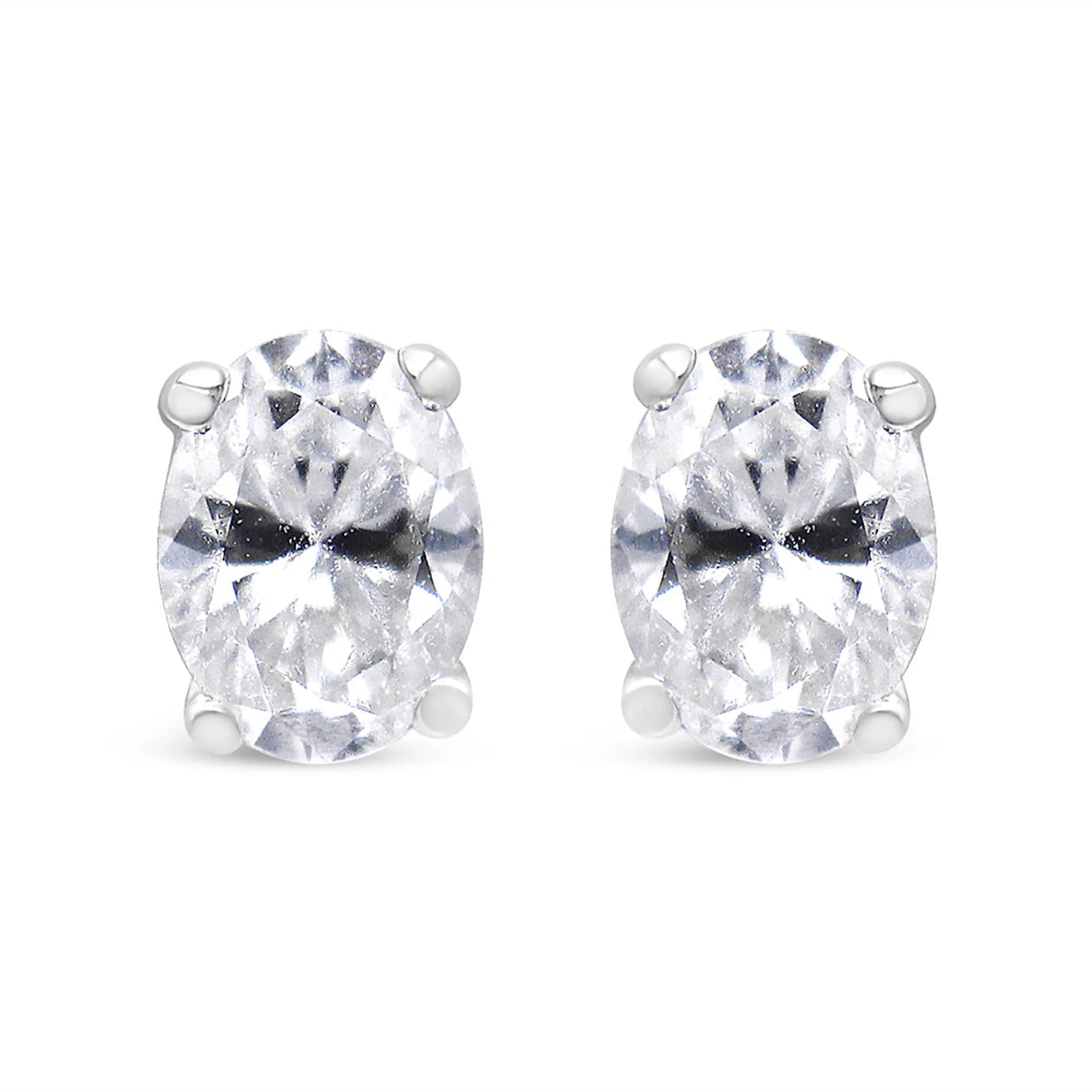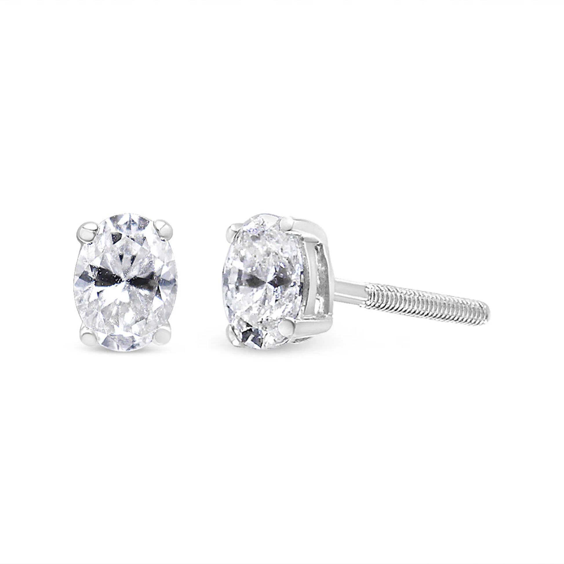 Add a touch of shine to your everyday look with these beautifully classic 1/2 or 1 CTW diamond solitaire earrings. These studs are crafted in 14k white gold, a metal that will stay tarnish free for years to come. The F-G color diamonds are lab-grown and oval shape. They're embellished in a classic 4-prong setting and have a VS2-SI1 clarity. These magnificent earrings will look stunning on your ears and be the perfect addition to your jewelry collection. They come with a screw-on mechanism for a safe and secure fit on your ears.